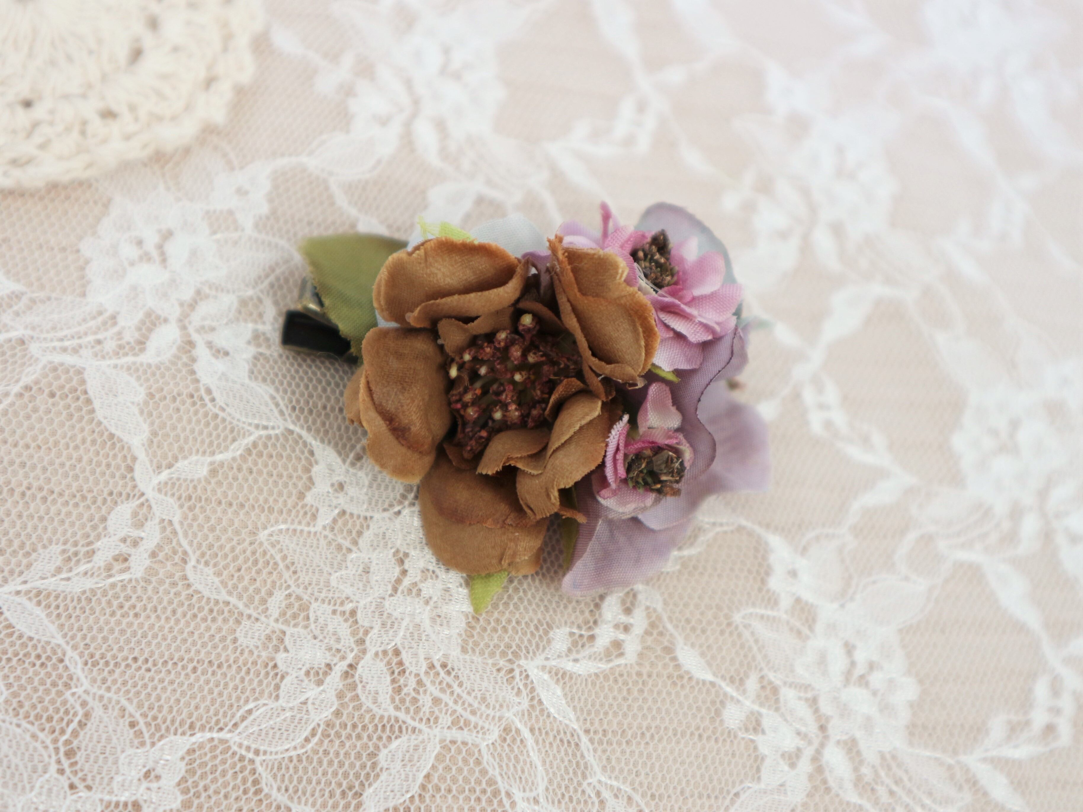 アーティフィシャルフラワーで作ったミニコサージュです。