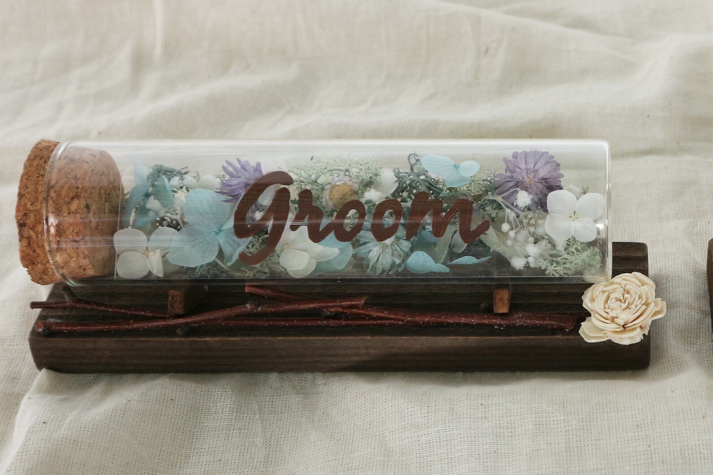 プリザーブドフラワーやドライフラワーを入れてナチュラルに仕上げました。