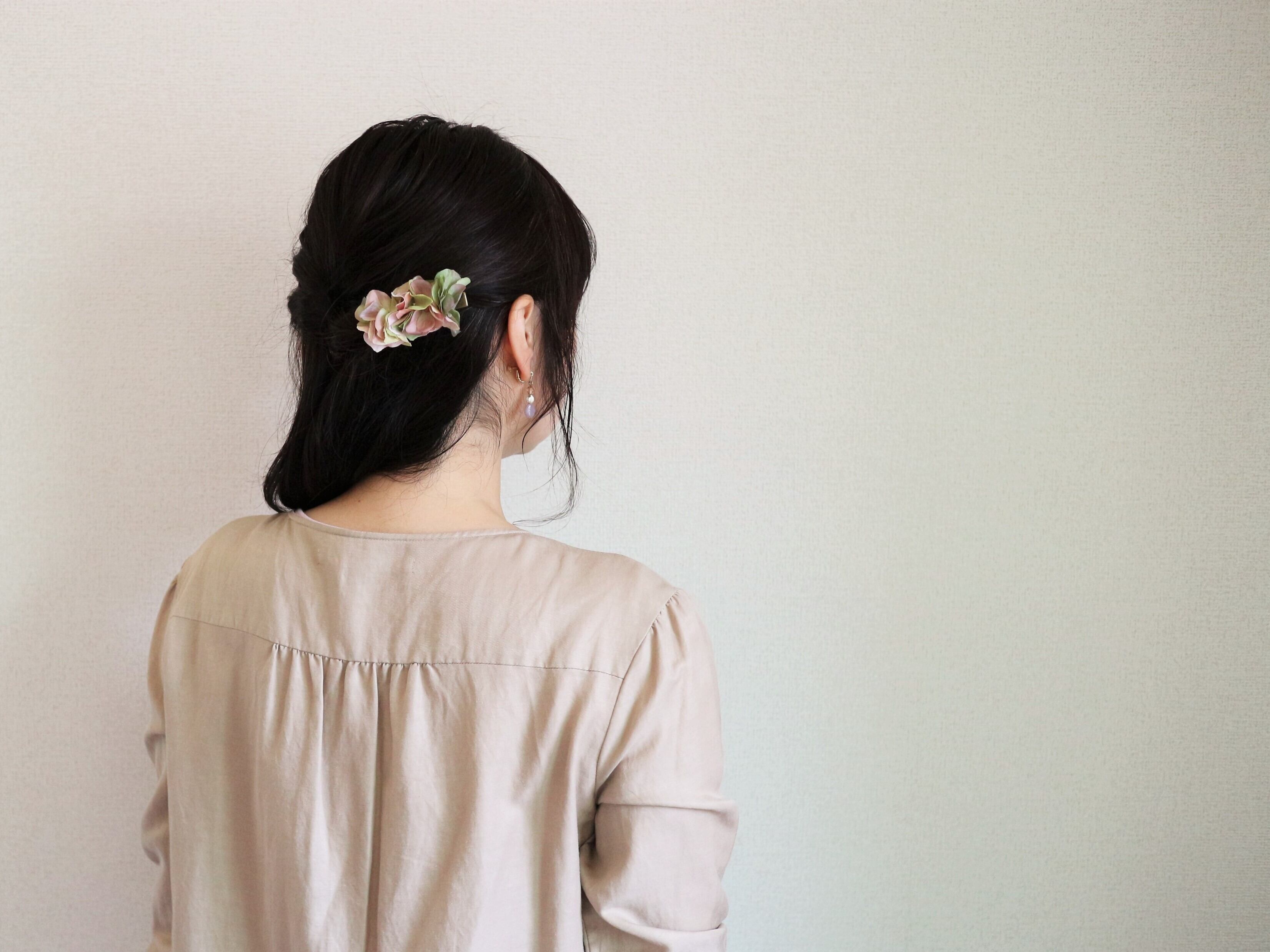 落ち着いた色合いですので、華やかになりすぎず大人かわいいヘアアレンジが簡単に出来上がります。