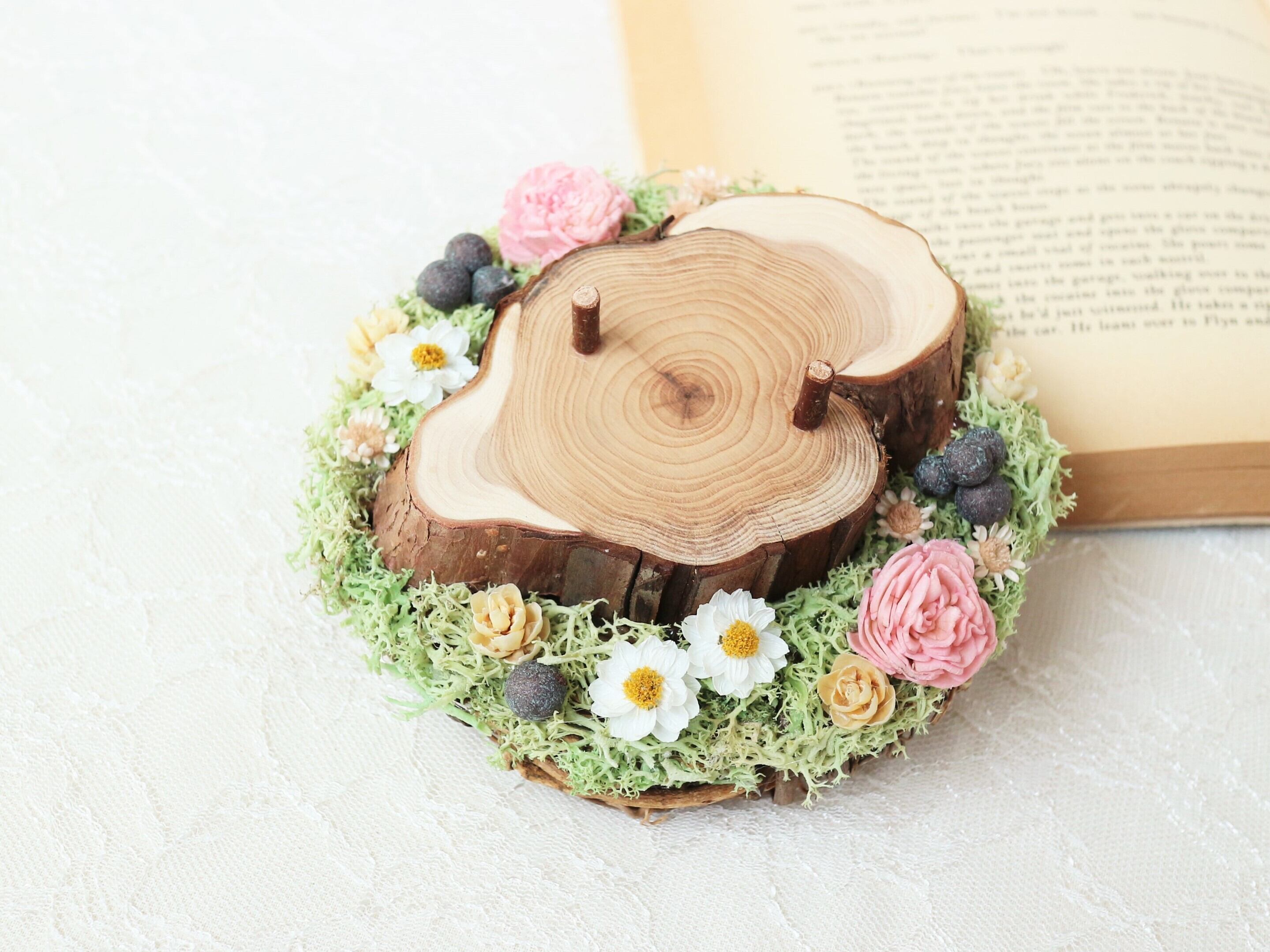 ・天然の素材を使用しておりますので、切り株の形やお花の咲き具合が