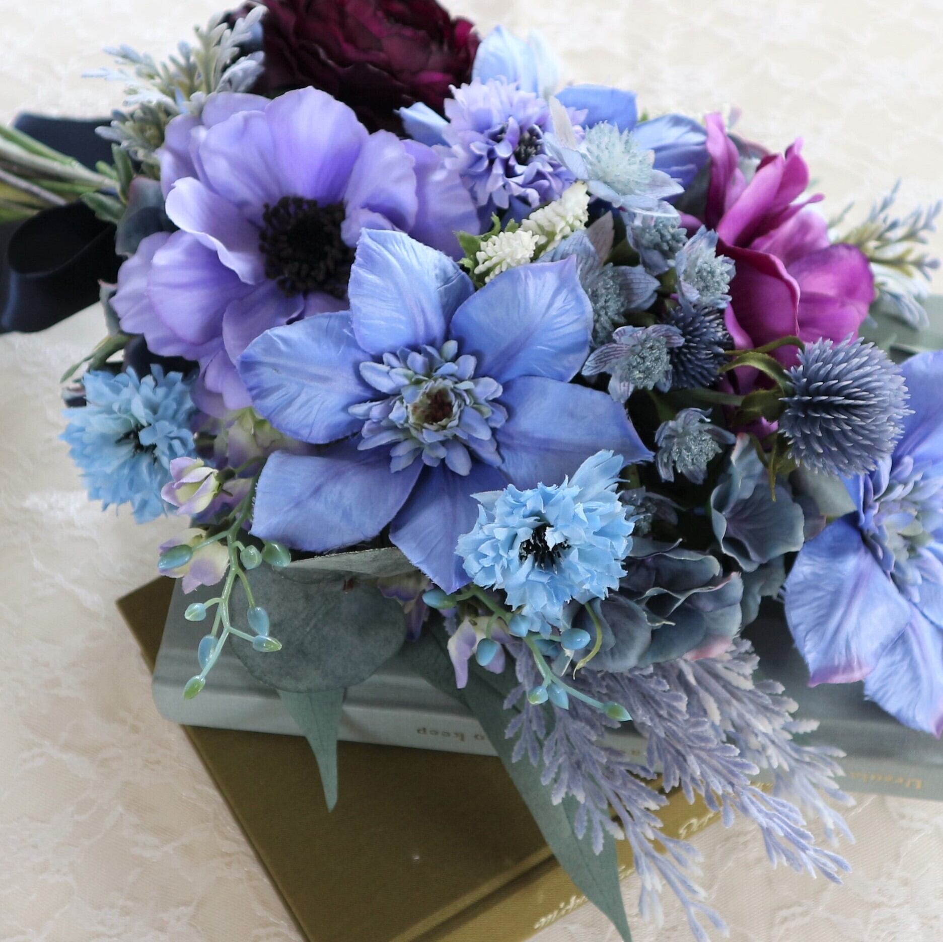 ブルーのお花をふんだんに使った