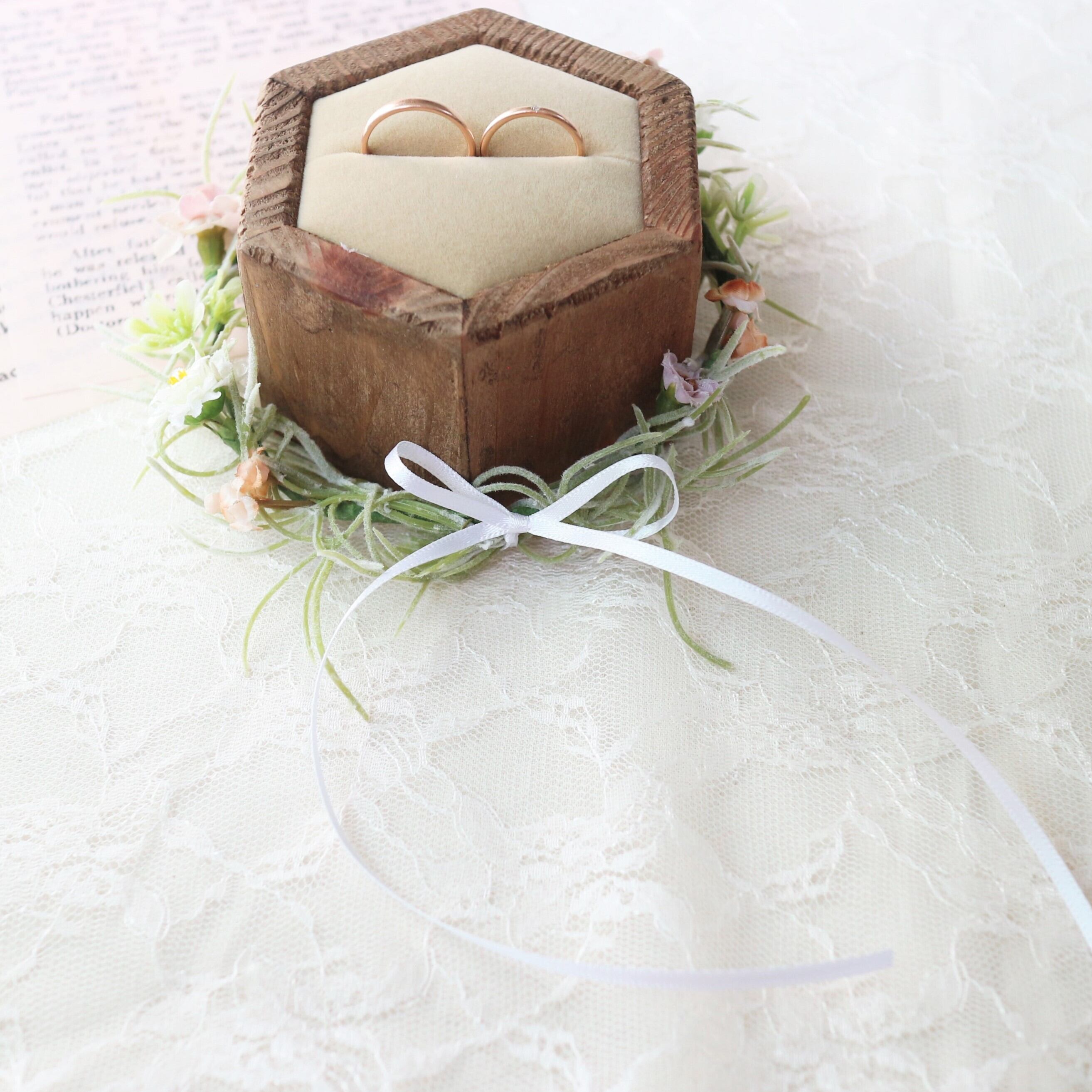 木製のお洒落なリングスタンドを中心に