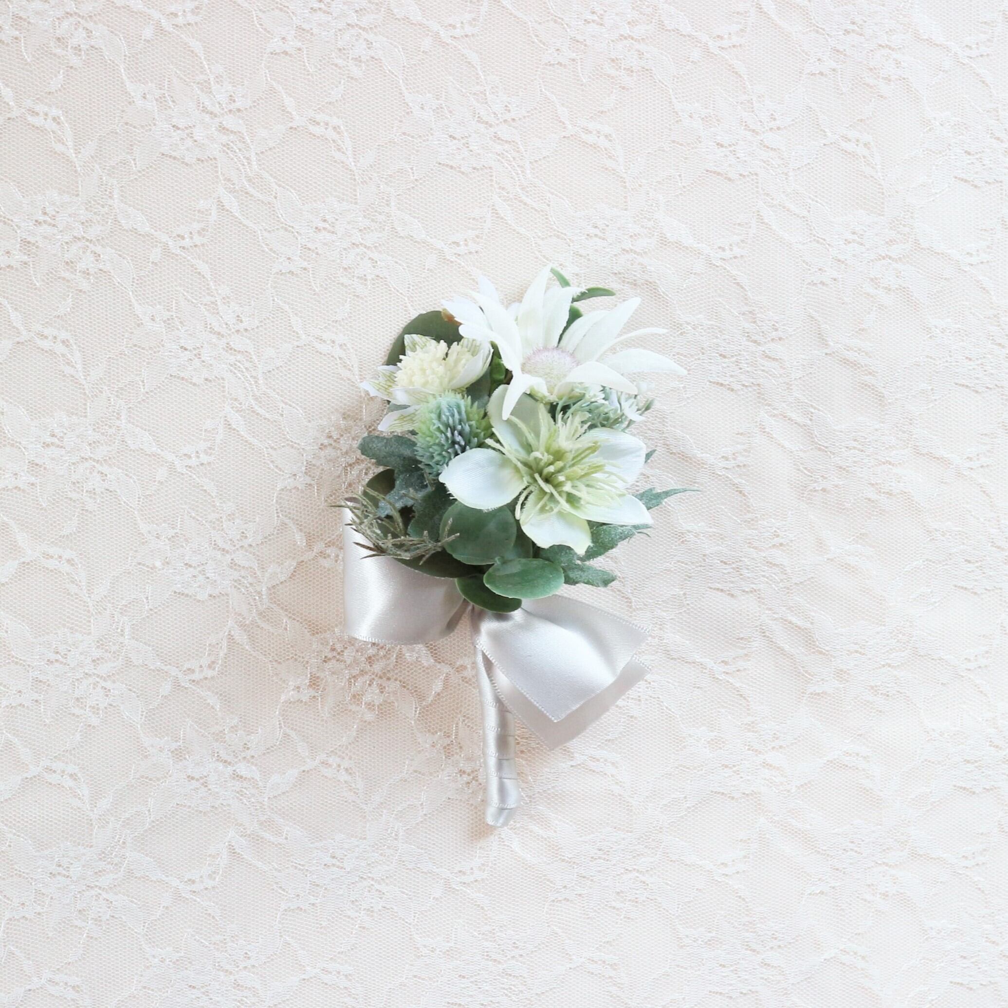 フランネルフラワーとエリンジウムのブーケ&ブートニアset